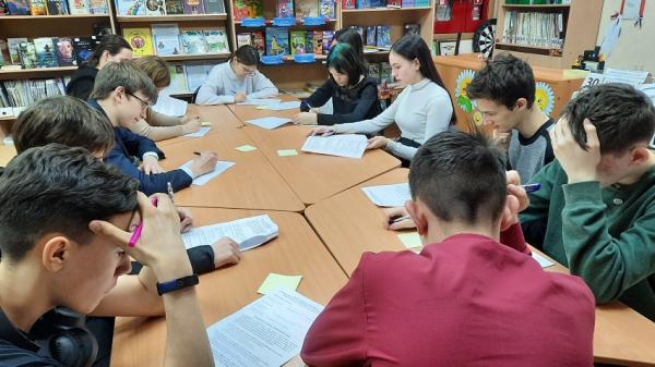 В ноябре стартовал первый этап Всероссийской олимпиады на всех площадках библиотек Нефтеюганского района. Лемпинская поселенческая библиотека им. Е.Д. Айпина стала одной из площадок для проведения Олимпиады. В библиотеку были приглашены старшеклассники НРМОБУ «Лемпинская СОШ» для участия в Олимпиаде «Символы России. Русский язык: история письменности».