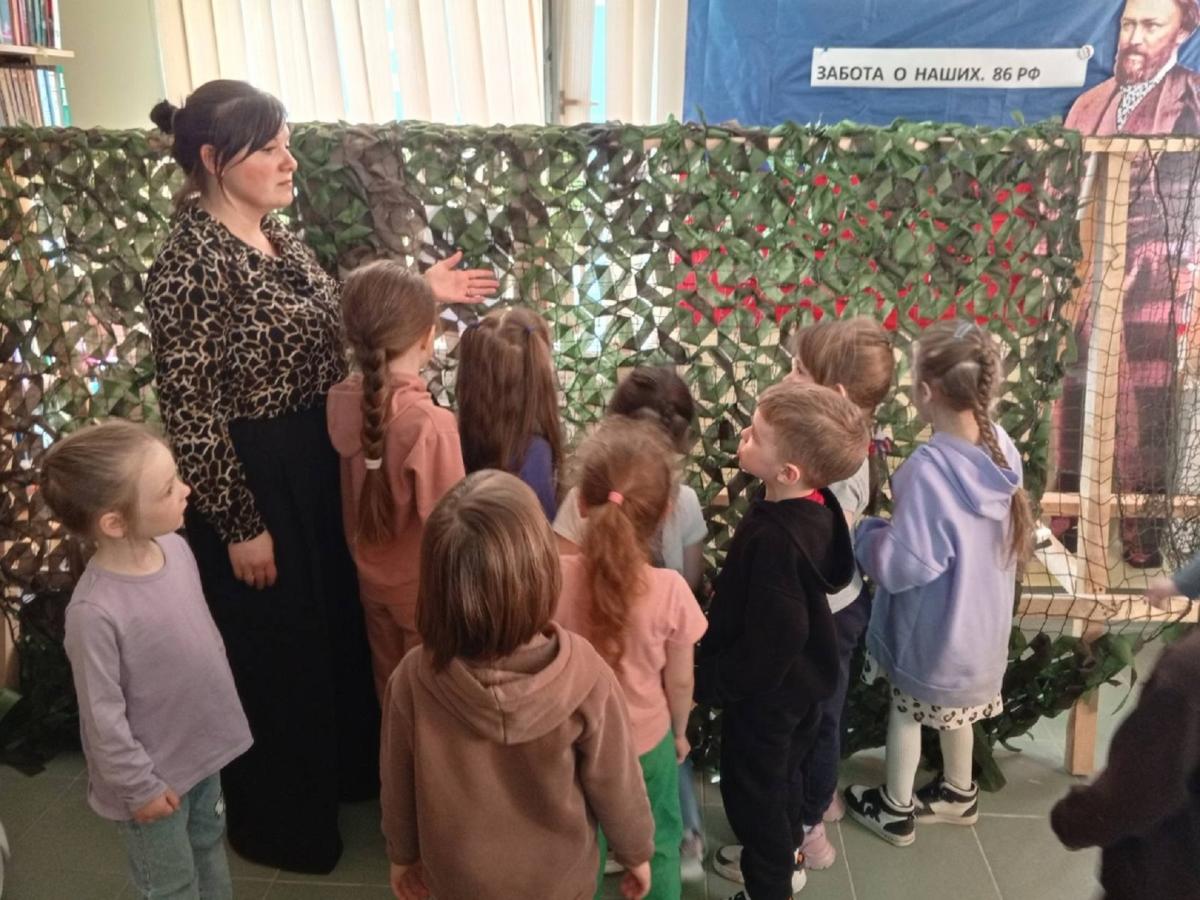 В преддверии Дня России Куть-Яхская поселенческая библиотека провела мастер-класс по плетению маскировочных сетей по проекту «Забота о наших. 86 РФ», для воспитанников детского сада «Морошка».